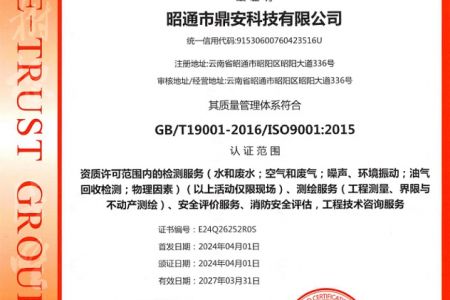 2003年11月10日,昭通市鼎安科技有限公司成立,初始主要從事第三方安全工程技術(shù)服務(wù),經(jīng)多年運(yùn)營(yíng),發(fā)展為多專(zhuān)業(yè)綜合科技平臺(tái),為社會(huì)提供多種專(zhuān)業(yè)技術(shù)服務(wù)工作。 現(xiàn)公司注冊(cè)資金為1200萬(wàn)元,公司法定代表人:毛衛(wèi)旭。公司主要業(yè)務(wù):安全評(píng)價(jià)、安全標(biāo)準(zhǔn)化評(píng)審、安全工程技術(shù)服務(wù);環(huán)境監(jiān)測(cè)、職業(yè)衛(wèi)生檢測(cè)、檢驗(yàn);法律訴訟及非訴訟服務(wù);司法鑒定、固定資產(chǎn)投資項(xiàng)目節(jié)能服務(wù);工程咨詢(xún);工程測(cè)量測(cè)繪;安全教育培訓(xùn)等。是安全生產(chǎn)服務(wù)、安全教育培訓(xùn)機(jī)構(gòu),也是環(huán)境監(jiān)測(cè)和職業(yè)衛(wèi)生服務(wù)機(jī)構(gòu),同時(shí)也是綜合的檢測(cè)檢驗(yàn)、綜合科技平臺(tái)服務(wù)機(jī)構(gòu)。多年來(lái)為公、檢、法、司、軍、警、海關(guān)、仲裁、安監(jiān)、工礦商貿(mào)企業(yè)、社會(huì)團(tuán)體及個(gè)人提供多專(zhuān)業(yè)技術(shù)服務(wù)。